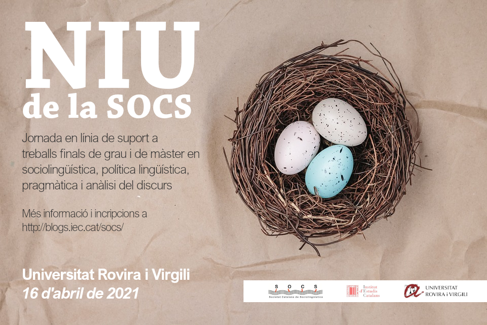 La SOCS obre una nova crida a la participació al Niu de suport (tallers pràctics) de la SOCS (IEC) per a TFGs i TFMs de l’àmbit de la sociolingüístca. Són uns tallers per ajudar els estudiants a dissenyar i preparar els seus projectes. Enguany aquesta activitat es realitzarà de forma virtual.