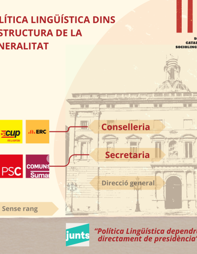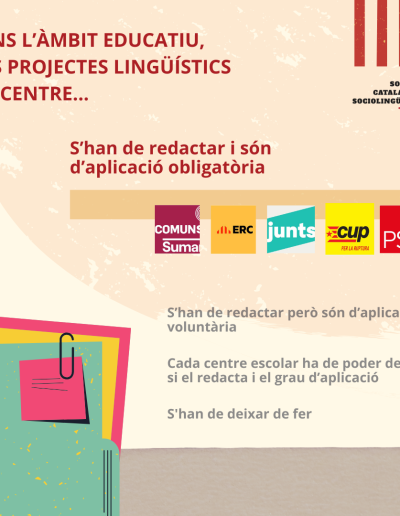 De les respostes obtingudes, s’extreu un consens dels partits a l’entorn de la voluntat d’augmentar el pressupost, de fer del català el centre de gravetat del model lingüístic escolar, d’aplicar obligatòriament els projectes lingüístics dels centres escolars o de considerar que el català està en una situació de minorització. En canvi, hi ha posicions diferents respecte del rang que ha de tenir la política lingüística, dels requisits lingüístics per accedir a la funció pública o de les inspeccions per l’incompliment de la legislació lingüística.